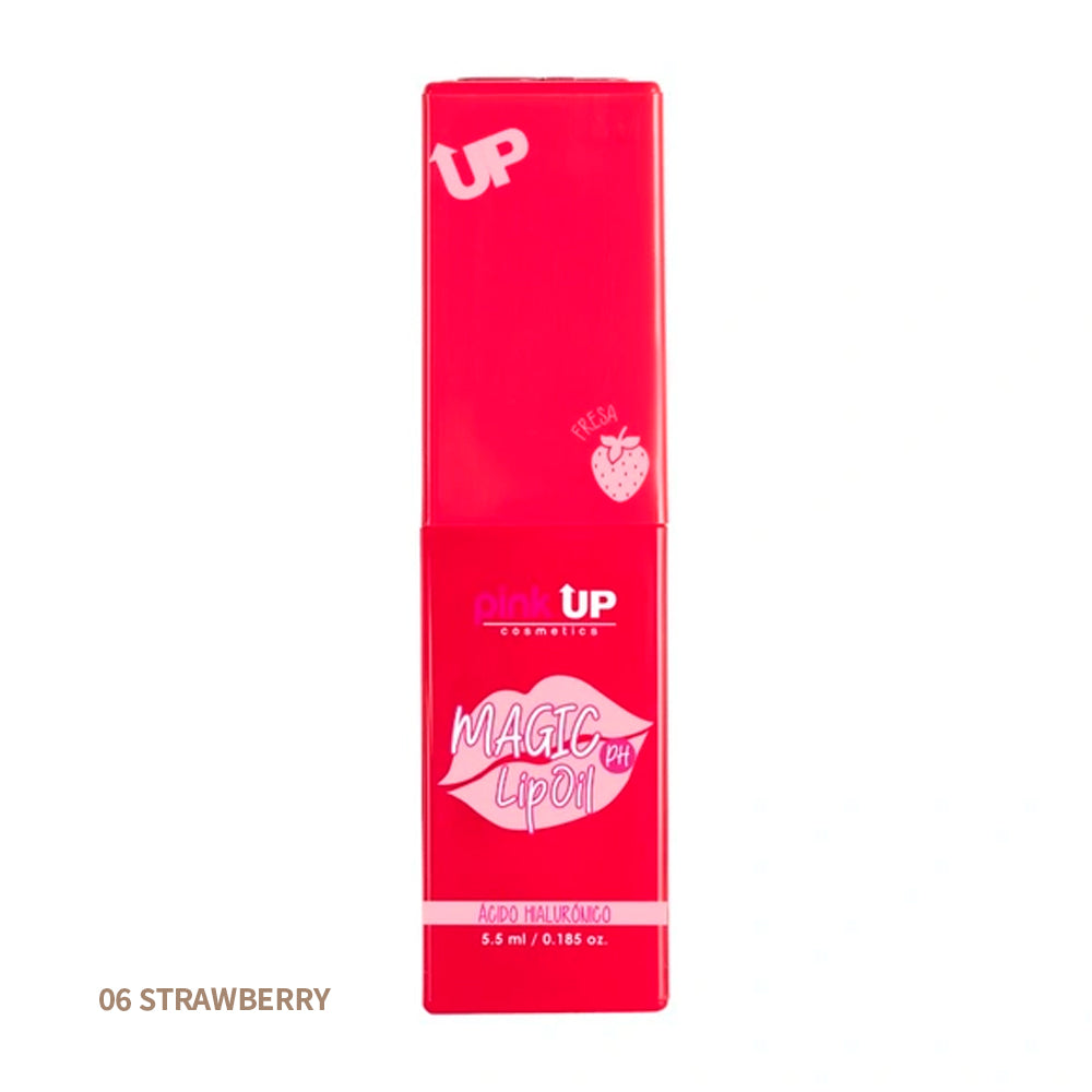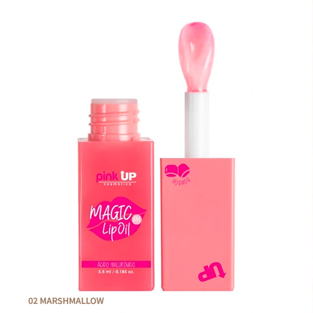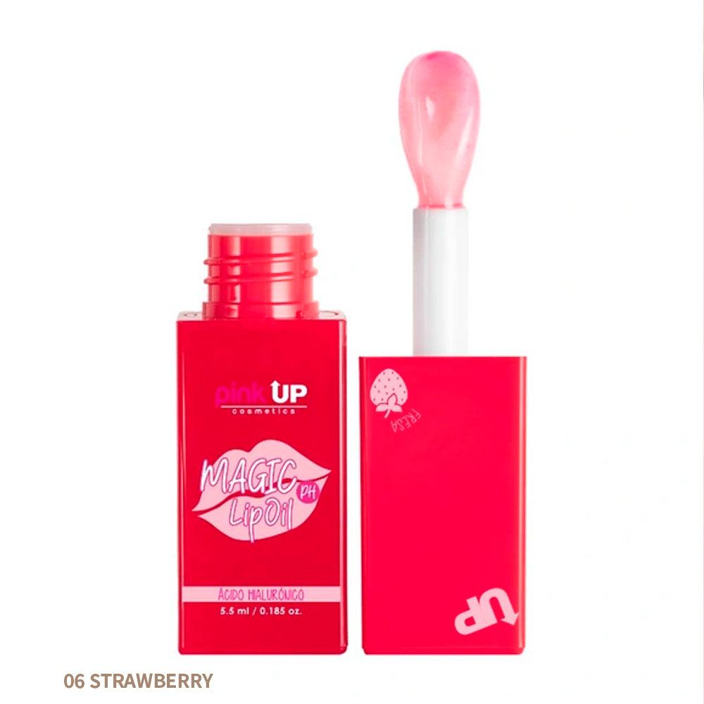El Magic Lip Oil de Pink Up es un aceite labial enriquecido con ácido hialurónico, diseñado para brindar hidratación profunda, suavidad y un acabado brillante que realza tu belleza natural.