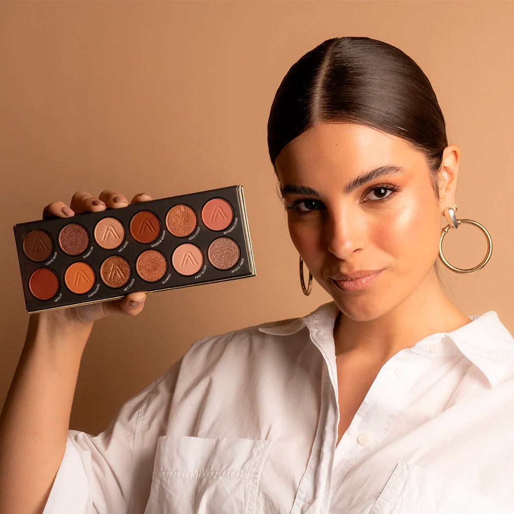 La paleta de sombras 1st Scene contiene 12 tonos tierra, entre los que encontrarás 6 satinados y 6 mates.
