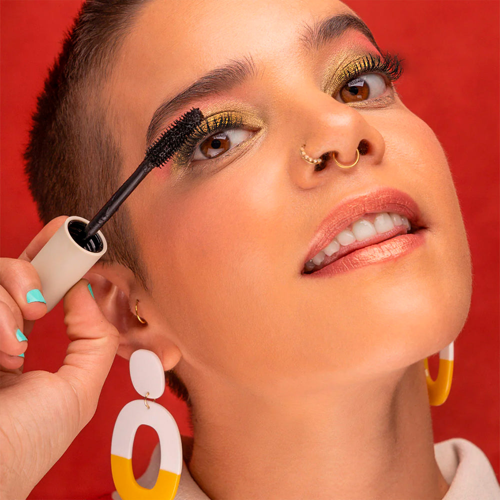 Aplica desde la base hasta las puntas en movimiento en zigzag para lograr un efecto alargador, con volumen y sin grumos.